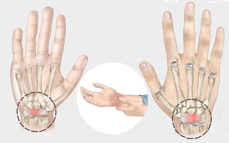 Eine im Volksmund als „Verstauchung des Handgelenks“ bezeichnete Verletzung meint eigentlich nichts anderes als das Überdehnen der Bänder am Handgelenk. Das Handgelenk überstreckt bzw. überbeugt sich, meist bei einem Unfall. Infolgedessen kommt es zu Schmerzen aufgrund Bänderzerrung.