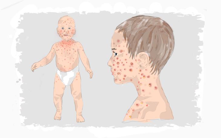 Der Ausschlag beginnt dabei im Gesicht und breitet sich über Rumpf, Arme und Beine aus.
